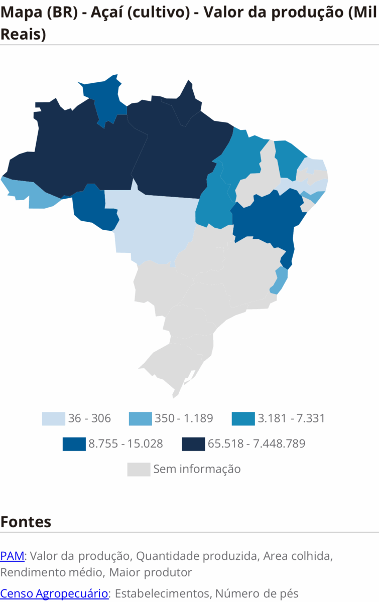 Para o pesquisador Alfredo Homma, da Embrapa Oriental, os números se devem, principalmente, à transição que a cultura vivencia. O açaí passou de atividade extrativa a sistema manejado e, em alguns estados, como São Paulo e Goiás, plantado com irrigação.