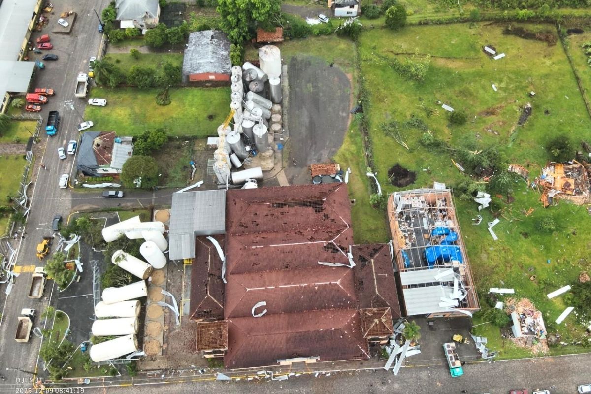 Além dos danos na zona urbana, ao menos 20 parreirais foram destruídos. Um galpão da Vinícola Bebber foi devastado. Na estrutura, localizada na cidade, eram feitas a expedição, rotulagem e estoque de produtos semi-acabados e acabados. “Esse pavilhão, ele não existe mais. Cobertura, paredes, foi tudo pelos ares”, disse Felipe Bebber, um dos proprietários.