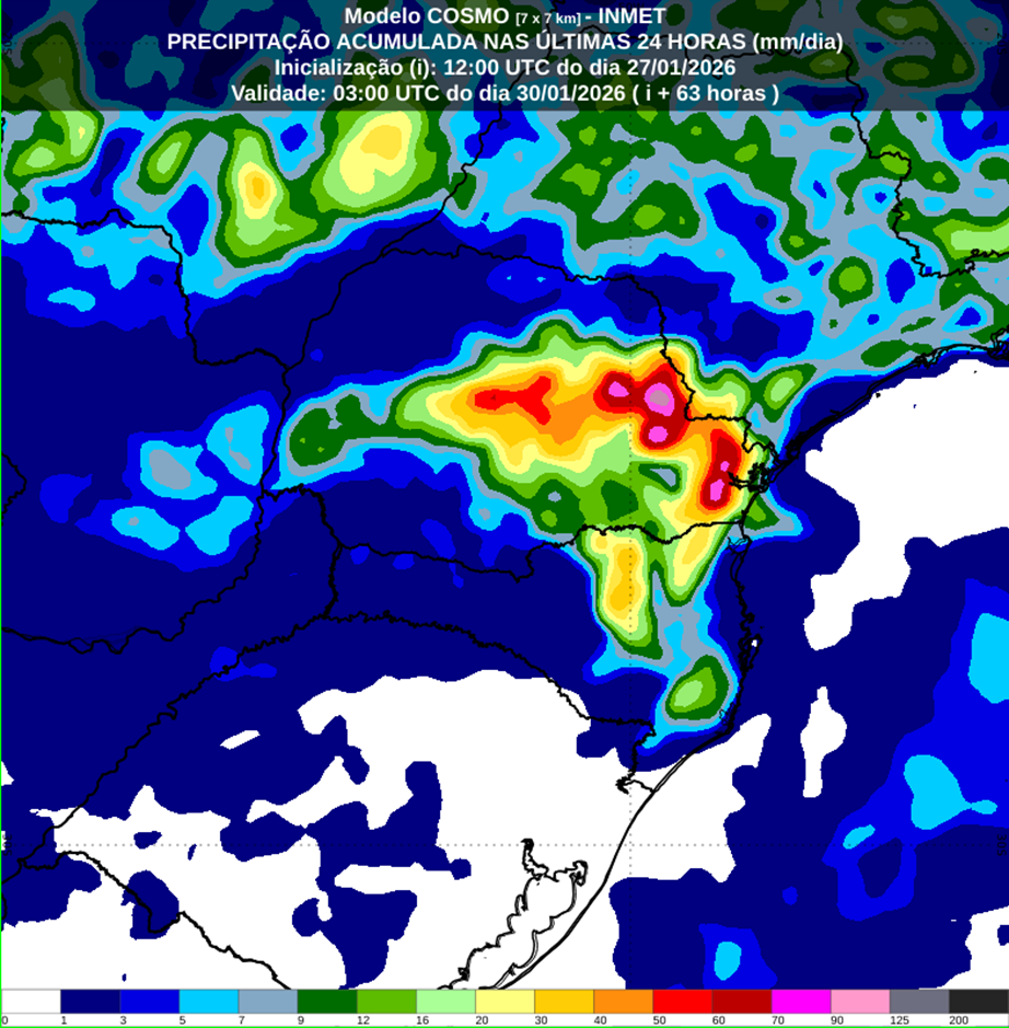 Segundo o Inmet, a frente fria atua inicialmente sobre Paraná e Santa Catarina. Na sexta-feira, 30, a formação de um ciclone no litoral da Região Sudeste amplia as áreas de instabilidade e eleva os volumes de chuva em São Paulo, Rio de Janeiro e no sul de Minas Gerais.